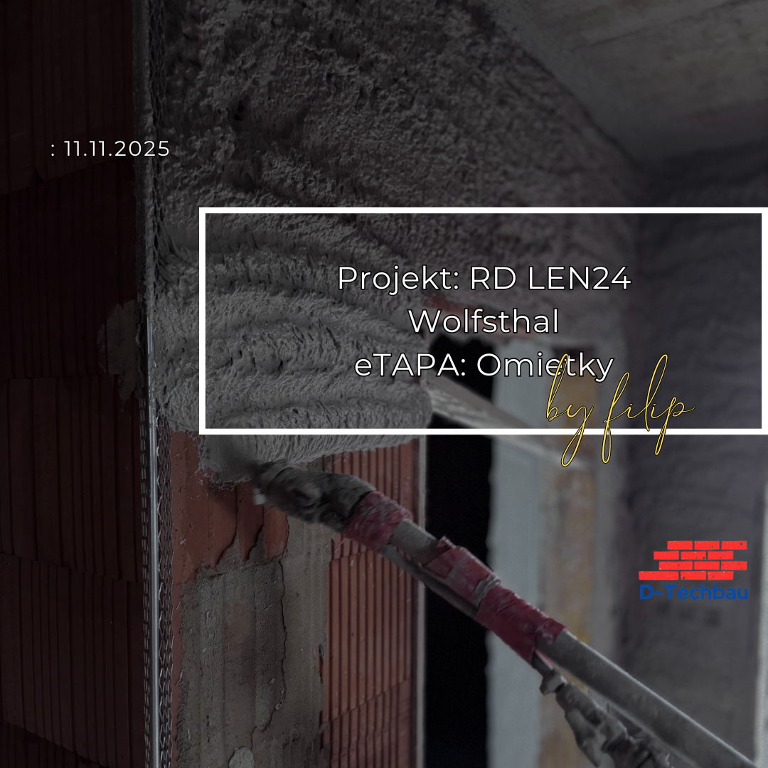 V obci Wolfsthal pokračujeme v prácach v interiéri strojovým nanášaním sadrovej omietky. Táto etapa predstavuje dôležitý krok pri realizácii interiérových povrchov a tvorí základ pre všetky nasledujúce práce, ako sú maľovanie, montáž zásuviek, svietidiel či obkladov.